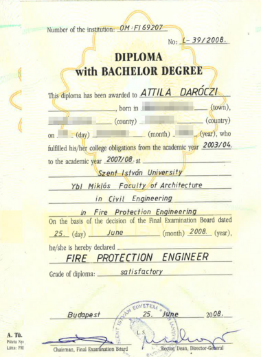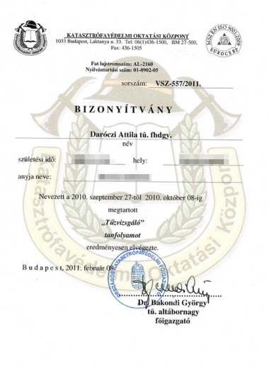 Mérnöki diplomával, tűzvizsgálati bizonyítvánnyal és ATF minősítéssel rendelkezem, amelyek garantálják a munkám szakszerűségét és megbízhatóságát. 20 éves tapasztalattal segítek ügyfeleimnek a tűzesetek okainak pontos feltárásában.